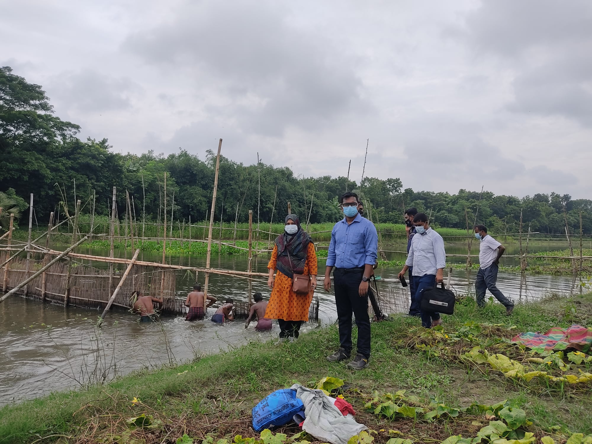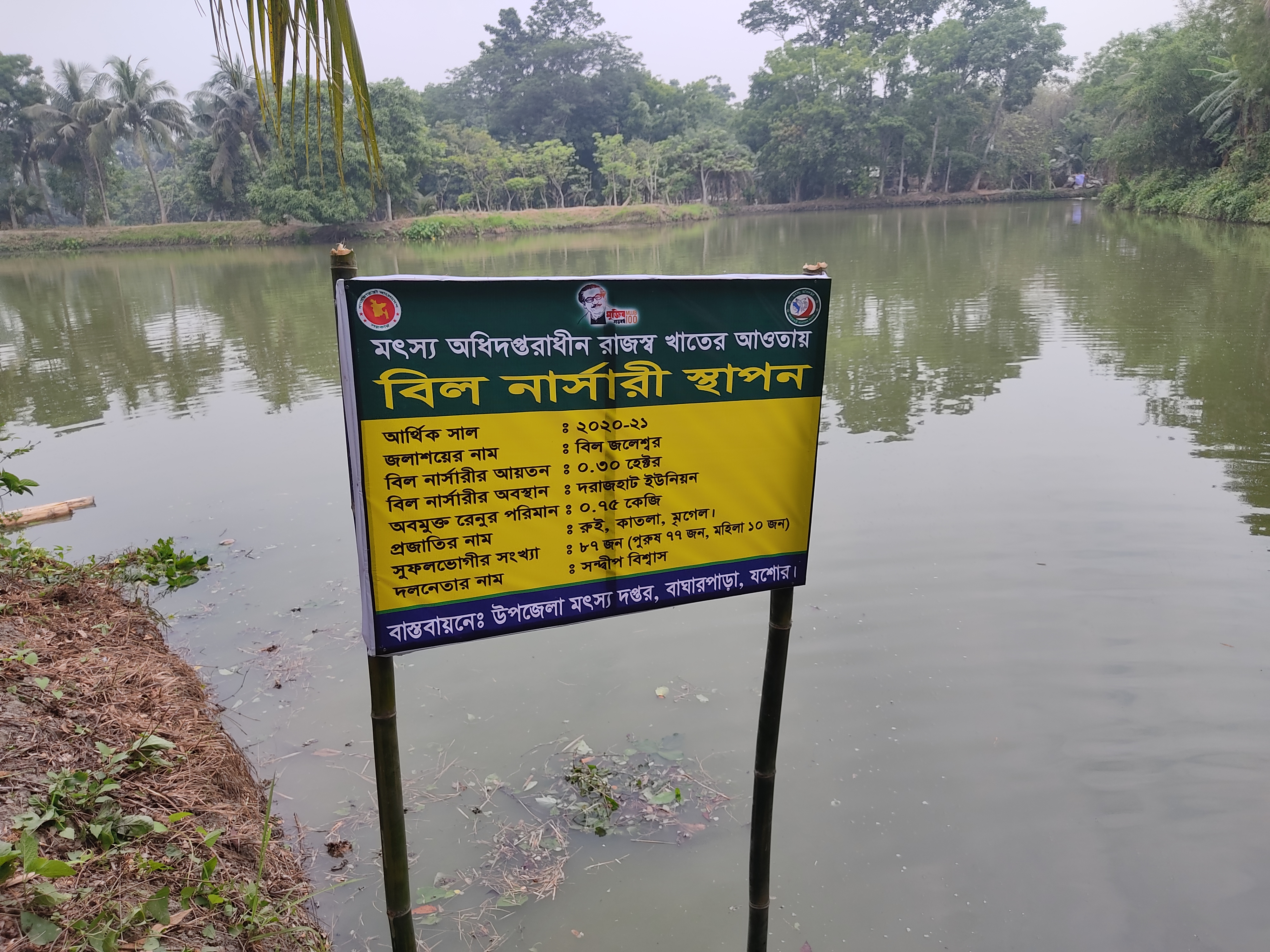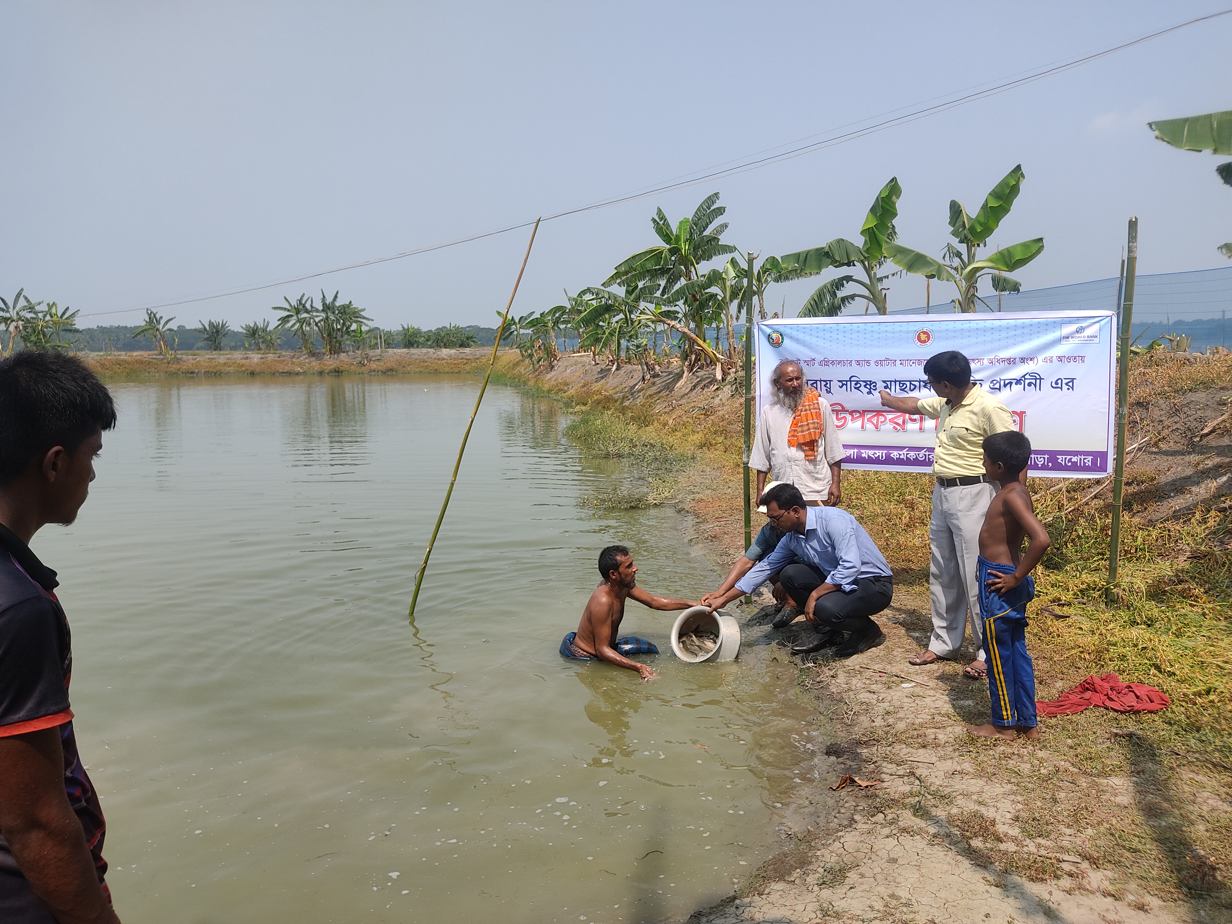 কার্প প্রদর্শনী পুকুরে পোনা অবমুক্তকরন